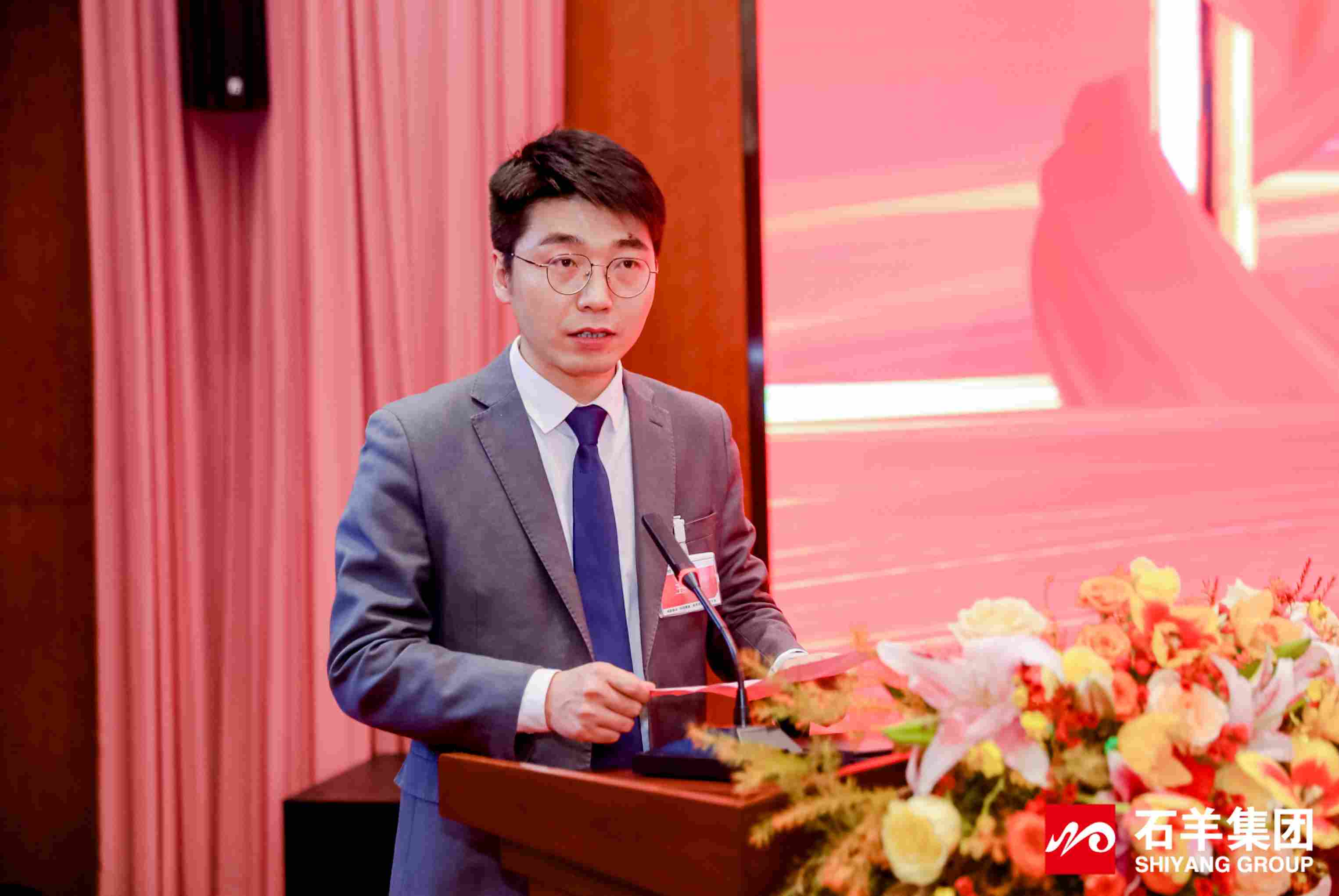 伴隨著雄壯嘹亮的國歌聲,大會正式拉開序幕。集團副總裁劉恒主持并帶領全體參會人員重溫2025年發展中的重要事件。一幕幕奮進場景的回溯,讓每一位石羊人對過去一年的并肩拼搏有了更深刻的共鳴,也為新一年的前行積蓄了精神力量。